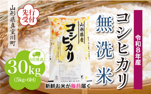 令和8年産 真室川町こしひかり <無洗米> 30kg 定期便 (5kg×6回)