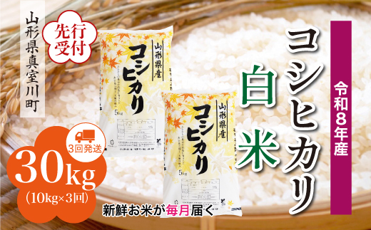 令和8年産 真室川町こしひかり <白米> 30kg 定期便 (10kg×3回)