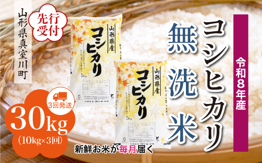 令和8年産 真室川町こしひかり <無洗米> 30kg 定期便 (10kg×3回)