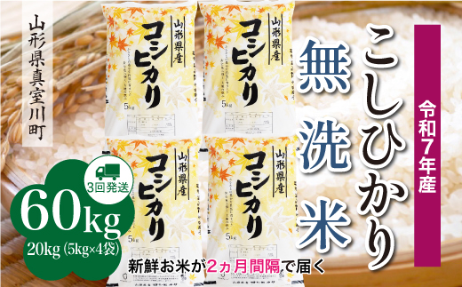令和7年産 真室川町コシヒカリ <無洗米> 60kg 定期便 (20kg×3回)